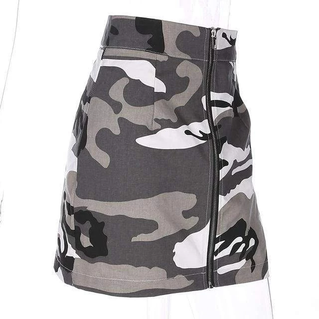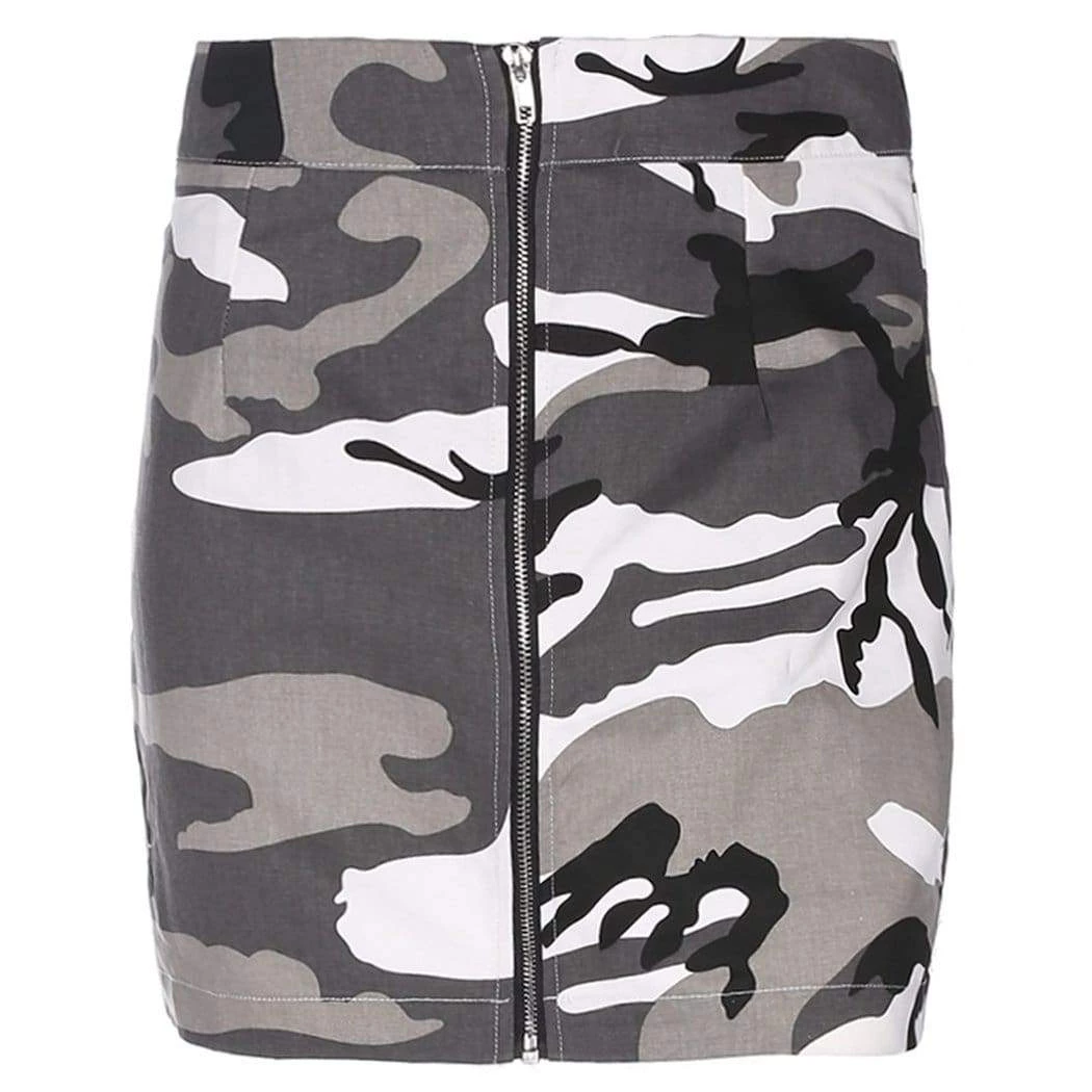 Forget the camouflage, you will definitely be seen in this A-line mini! Our grey camo skirt is the perfect piece for your closet in this seasons most-loved print, enhanced by the full length front zip. Pair with one of our crop tops for an insta worthy outfit.