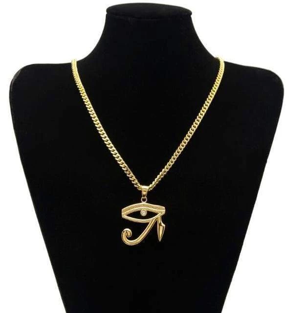 Get an Ancient Egyptian look with the Eye of Horus symbol of protection, royal power, and good health. Made from a high quality alloy and then 18 karat Gold plated it comes in two different sizes, a small pendant and a large one!