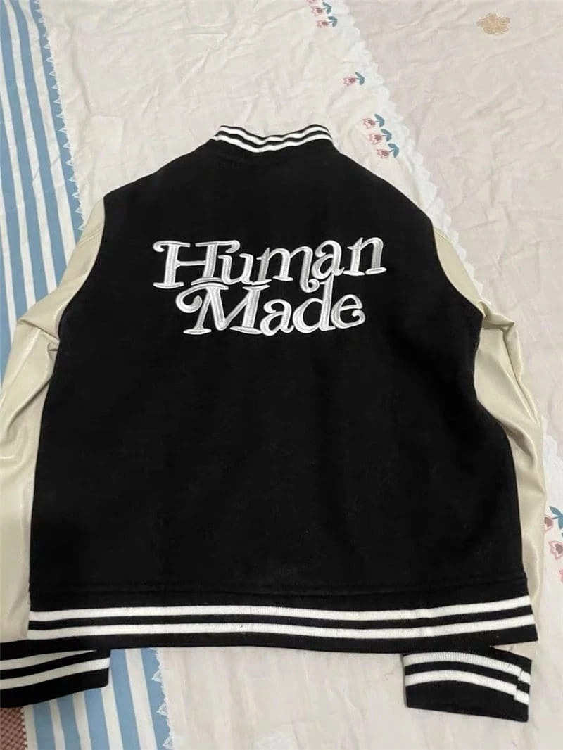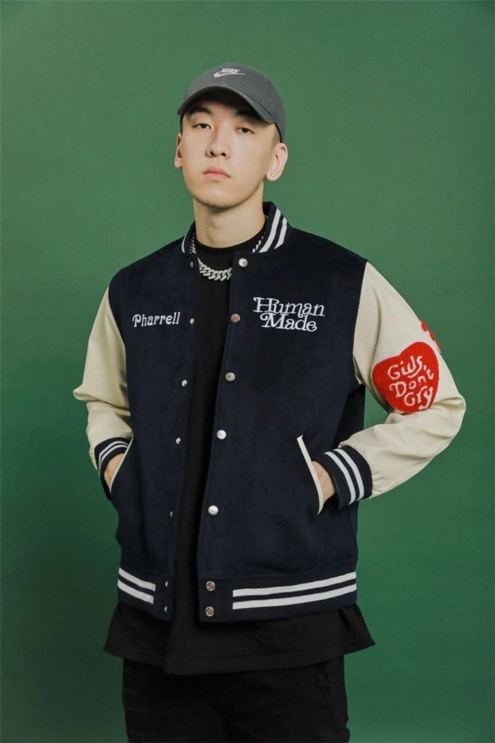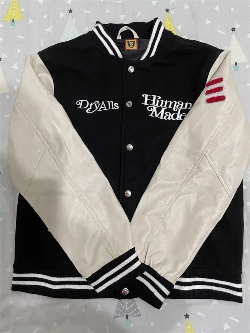 Give yourself the Human Made X Girls Dont Cry look that has fashion icons like Pharrell talking. With its retro versity look that has tkane over this season the Girls Don’t Cry Varsity Jacket is a premium streetwear piece that can match most fits.