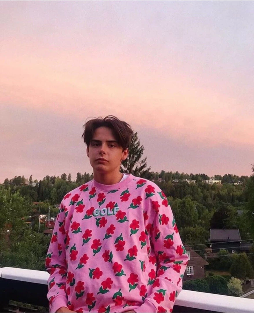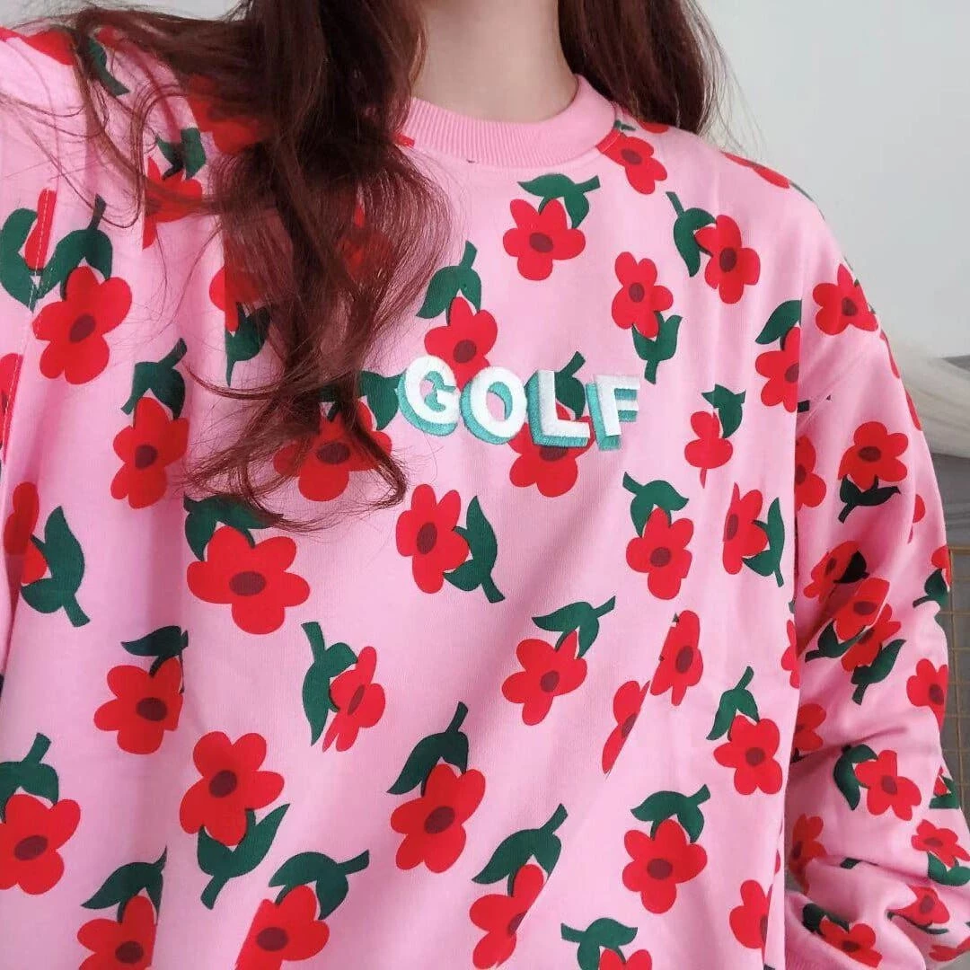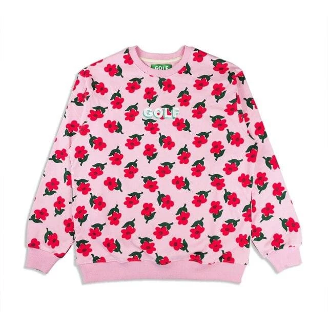 Secure Tyler The Creators iconic look with the bright pink Golf Wang Find Some Time Sweatshirt! The design features a repeat rose patten and a Golf logo on the front. This is a unique streetwear piece that is sure to catch attention.Â