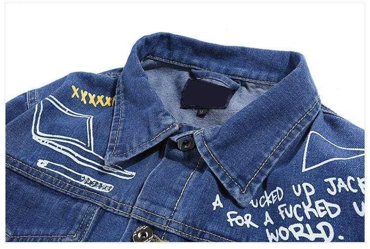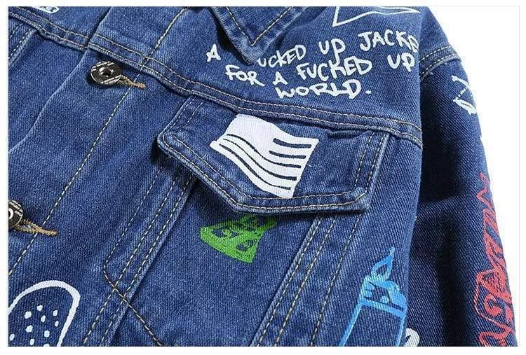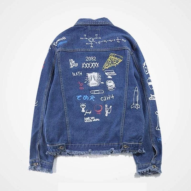 Checkout Streetgarm’s Graffiti Denim Jacket one of the most unique jackets we have. It features graffiti covering the entire jacket like skulls, aliens, guns and a variety of languages making this jacket a one of a kind. Available in Black and Blue.