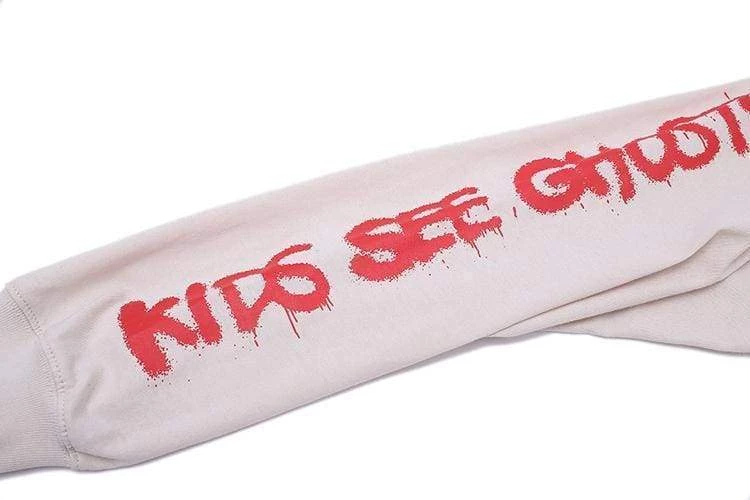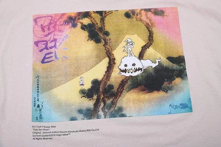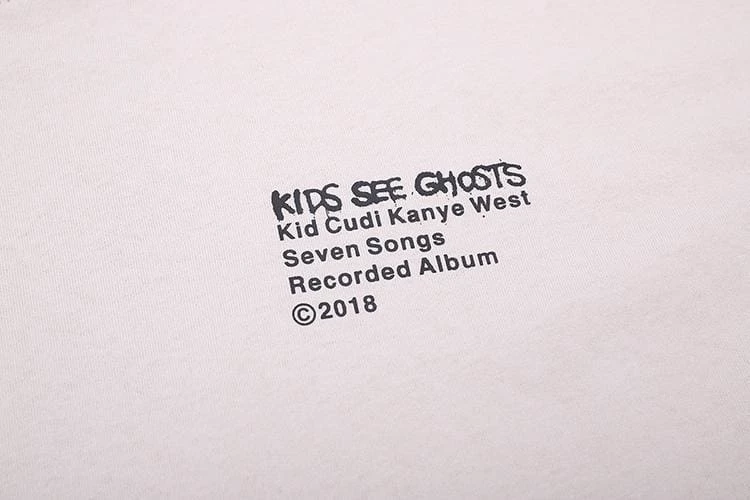 Celebrate Kids See Ghosts, a collaborative project from Kanye West and Kid Cudi. This t-shirt features the iconic album art on the back, the album name on the long sleeve and a smaller logo on the front giving this t-shirt a iconic look.Â