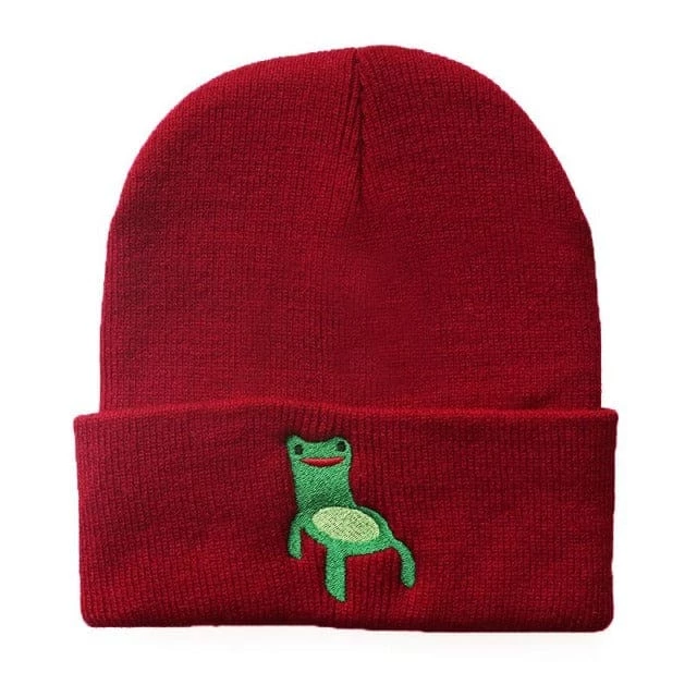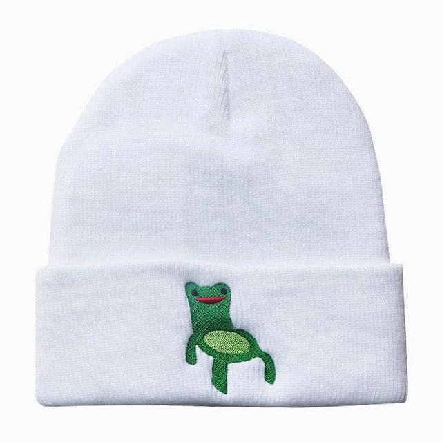 Our Froggy Chair Beanie is a straight up meme, Available in a range of color options the beanie which is one size fits all features custom embroidery of a frog shaped chair. Match with our range of streetwear to give yourself a unique current look.Â