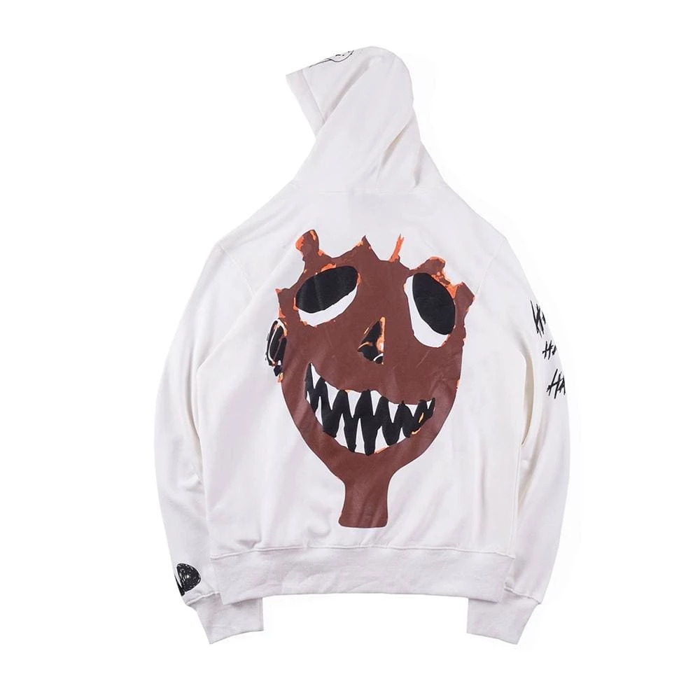 Checkout this XXXtencion merch piece! The Kitty Face Revenge Bad Vibes Hoodie features a large printed face on the back with shark like teeth representing the ‘bad vibes’ with the front design saying “i fuckin love humans”.