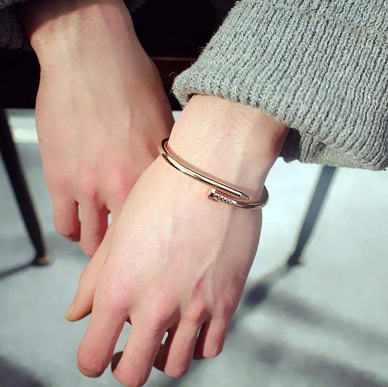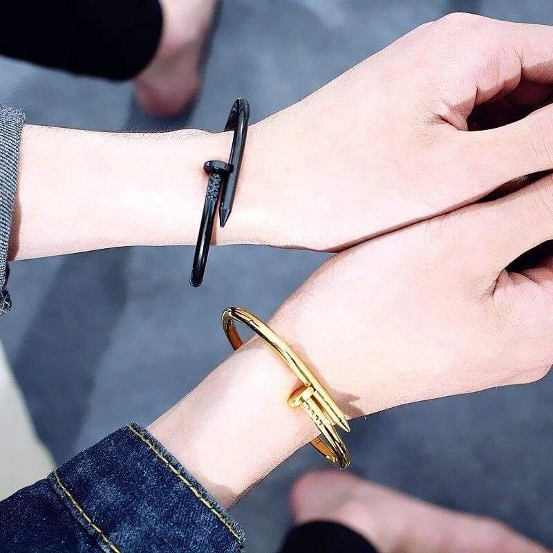 The Nail Bracelet is a unique Jewellery piece with a expensive designer feel. It can dress up any outfit! It is made from high quality metals and comes in 4 different variants; gold, silver, rose gold and matt black.Â