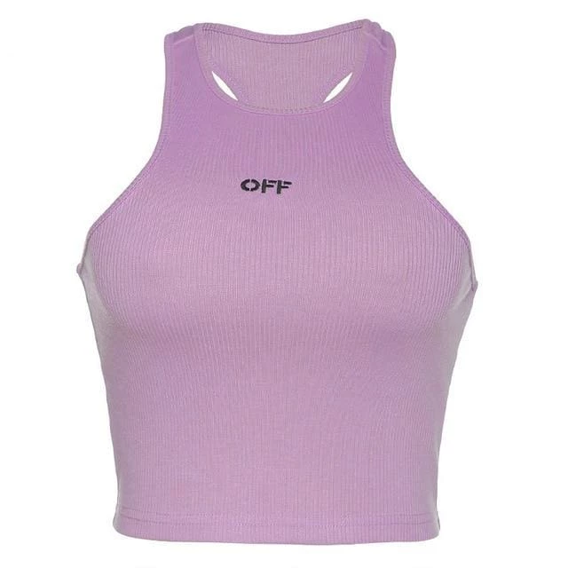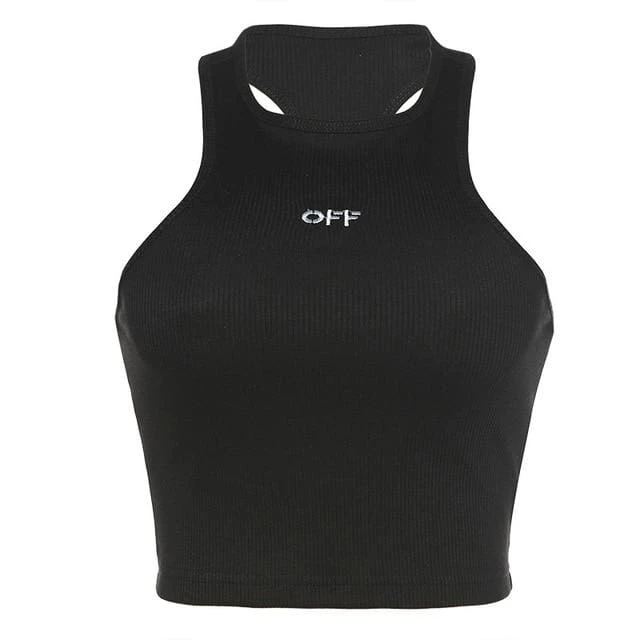Secure the Virgil Abloh look with this Off White inspired crop top. With its minimalist design feautring “OFF” embroidery this top comes in a range of stylish colorways! Get a streetwear look today with the “OFF” White Sleeveless Crop Top.Â
