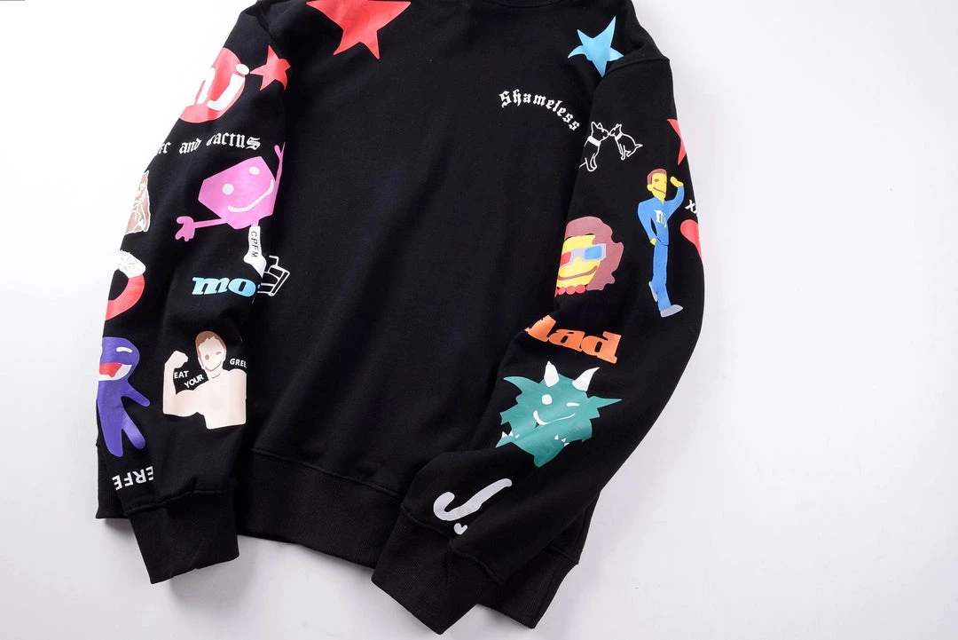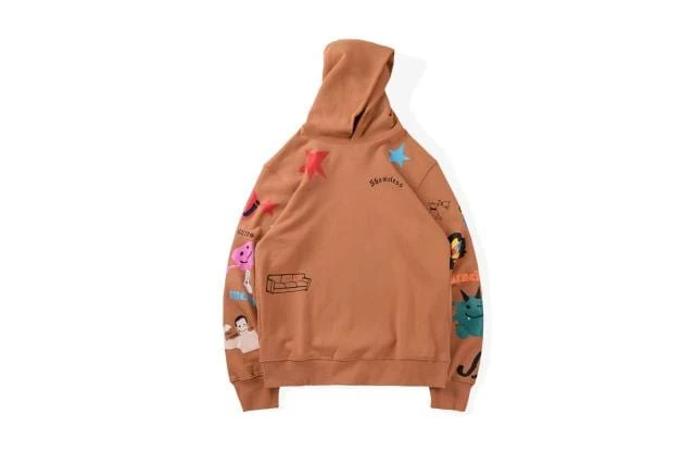 The CPFM Tattoo Hoodie is a must have piece from the Cactus Plant Flea Market. Available in black and brown the design features prints all over the sleeves of various CPFM symbols hence the the Tattoo hoodie name. Secure the “Shameless” Today.Â